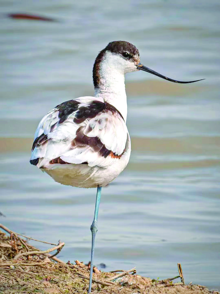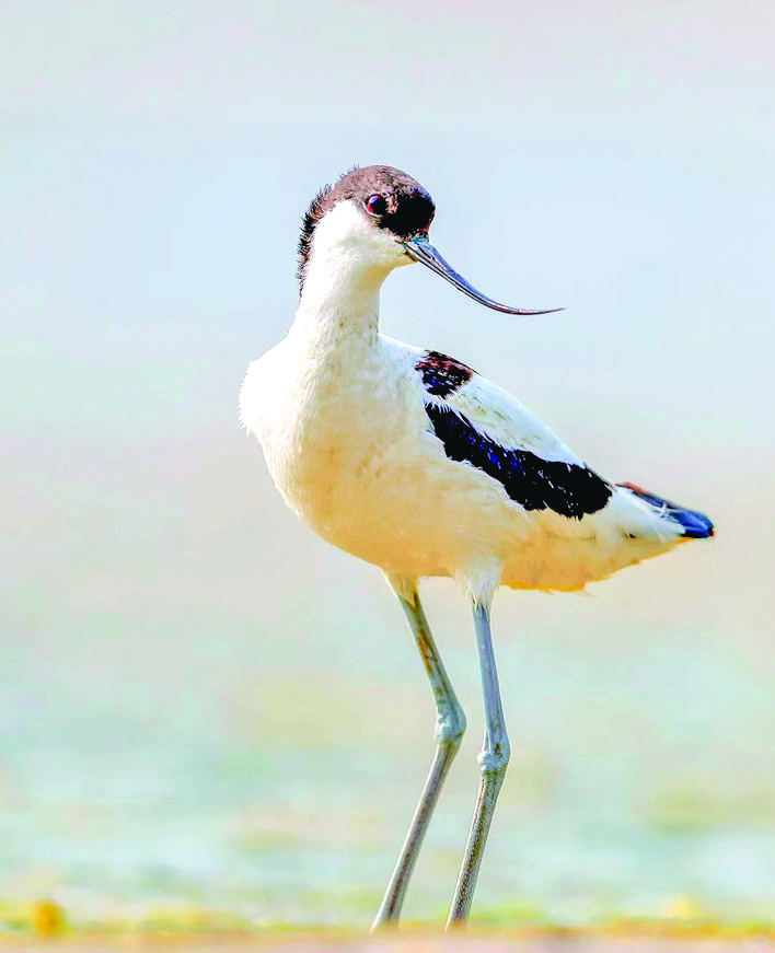修长的双腿轻盈如丝,那标志性的上翘鸟喙,宛如一把精致的镰刀,在泥滩上左右摆动,精准捕捉着小甲壳类及昆虫幼虫,被誉为“水中的扫荡者”……
