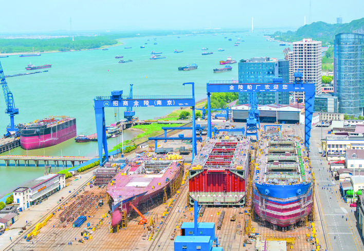 ◀4月16日,工人在招商工业金陵船厂赶制船舶订单(无人机照片)。 国家统计局16日发布的数据显示,初步核算,一季度国内生产总值(GDP)318758亿元,按不变价格计算,同比增长5.4%,比上年四季度环比增长1.2%。 新华社发