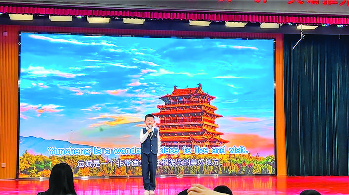 比赛现场,各参赛选手自信满满,用流利的英语分享家乡美食、讲述河东文化。他们标准的发音、生动的表达,赢得台下师生的阵阵掌声。