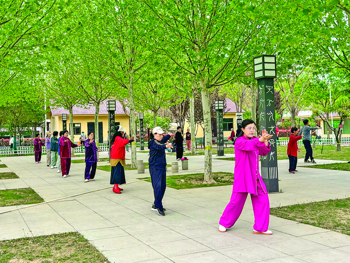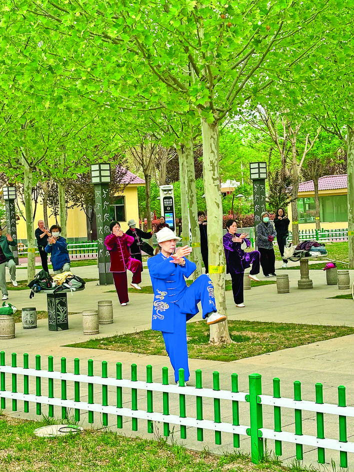 说起练习太极拳对大家的益处,老人们纷纷打开了话匣子。“我们年龄大了,行动没那么灵活,太极拳动作缓慢,练这个再合适不过。”跟着练了两年太极拳的王廷旺大爷感慨。冯阿姨也附和:“练了一段时间后,我明显感觉腿部比以前有力气了,身体越来越好,心情也跟着舒畅起来。这就是个良性循环。”