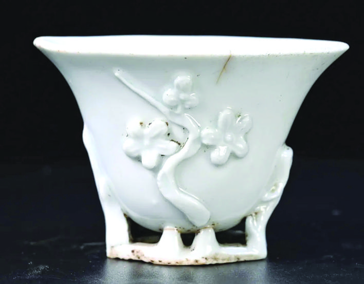 文物名片 主角:白釉贴塑梅花纹杯 出生时间:清代 尺寸:高6厘米、口径8.9厘米 藏宝地:盐湖区博物馆
