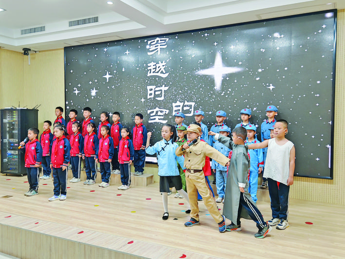 展演在情景剧《穿越时空的对话》中拉开序幕。学生身着不同年代的服饰,在诵读中感受革命先烈的奋斗精神。“百年前,先辈以笔墨为炬;今日,我们以勇气为帆!”五年级学生秦尔蔓的演讲《勇气,让我战胜自我》,以亲身经历讲述阅读如何助其突破舞台恐惧,赢得热烈掌声。二年级学生则通过《哪吒闹海》《小青蛙打老狼》等童趣表演,将经典故事化为勇气启蒙课,萌态十足的演绎引发阵阵欢笑。