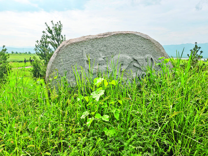 ▲河东成语典故园“结草衔环”雕塑