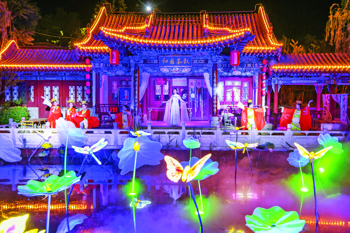 ▲4月30日晚,河东池盐文化博览园打造的文旅大戏——《宋风·夜宴》,迎来了首场演出。 这是该景区继《宋韵·南风歌》之后,打造的又一部大型实景演艺。5月1日~5日,每晚演出一场。记者 茹雅 摄