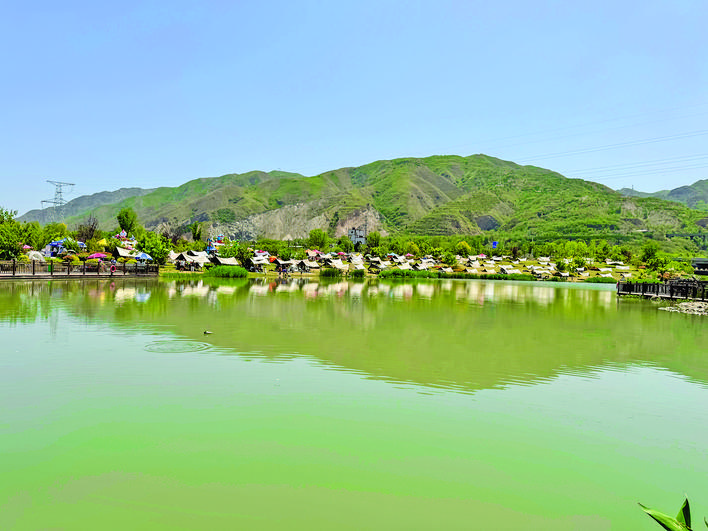 王女士和朋友们精心挑选了一处河畔的空地,搭建起色彩鲜艳的帐篷。随着帐篷的支起,这片天地仿佛被赋予了新的活力,成为他们临时的温馨小窝。