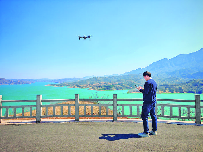 木质观景台上,手捧咖啡的年轻人正调试相机参数。网红博主吕雅玲的镜头里,粼粼波光与远山轮廓构成绝佳构图:“上周刷到航拍视频就心动了,实地比视频还要‘哇塞’。”沿湖而生的烟火气同样动人。十余个摊位沿木栈道蜿蜒排开,现磨咖啡的醇香与烤肠的焦香交织,手作鱼灯随河风轻摇。来自临汾的李燕在小摊小憩:“这里既有江南水乡的婉约,又有黄河水库的磅礴,是孩子认识母亲河的不错选择。”记者 刘凯华