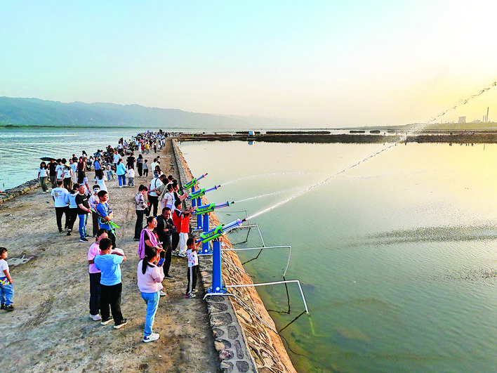 ▲5月2日,游客在运城盐湖景区度快乐假期。