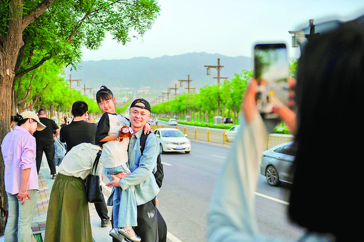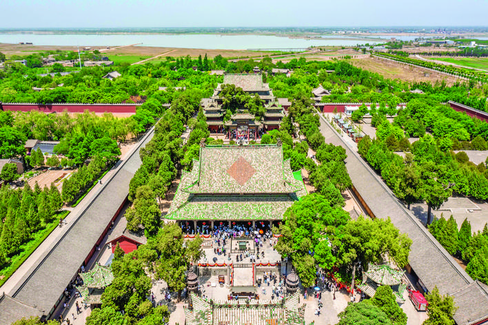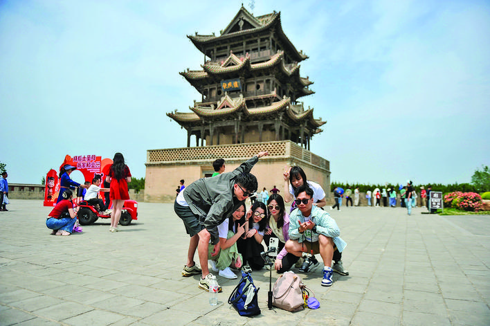 ▲5月4日,游客在万荣县后土祠景区拍照打卡。