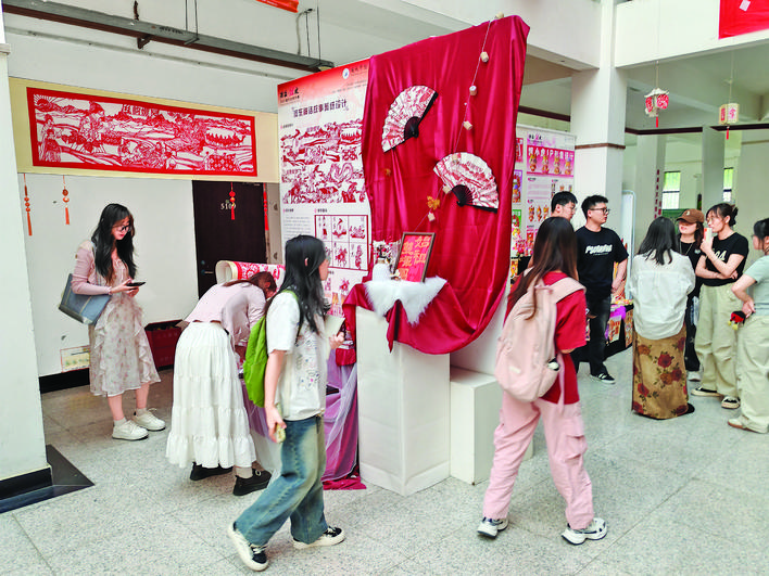 展览主展区设于该校画嫘楼,分为“守正创新”“绿色共生”“文商融合”三个单元,展出200余组涵盖文创设计、数字媒体、工艺美术等领域的作品。同时,在市群众艺术馆设分展区,集中呈现中国画、油画、水彩等传统艺术形式的当代诠释。