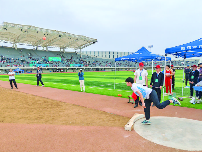 随后进行的跳高项目中,选手们助跑、起跳、过杆,动作一气呵成,在空中划出一道道优美的弧线;掷实心球运动员挥动臂膀,凝集全身力量,投出橙色实心球,将技巧与力量进行完美结合。