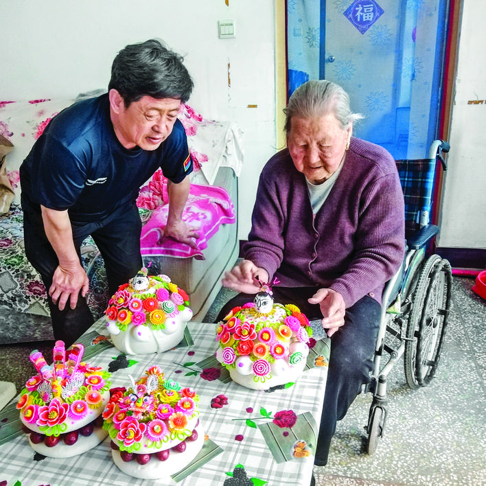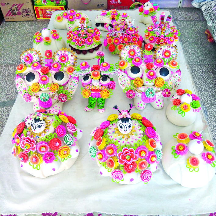 让范西玲老奶奶最得意的,是在2005年,她应邀到北京黄河京都大酒店参加面塑、面食大赛。那次,她制作的两米长的作品“龙凤呈祥”和用25公斤面粉分别捏成的老虎、狮子守护莺莺塔的面塑作品,五彩斑斓,高端大气,轰动了全场,在30多家团队中获得了大赛一等奖。为此,她受邀在北京黄河京都大酒店为各地面塑爱好者,连续捏了4个月的面塑。