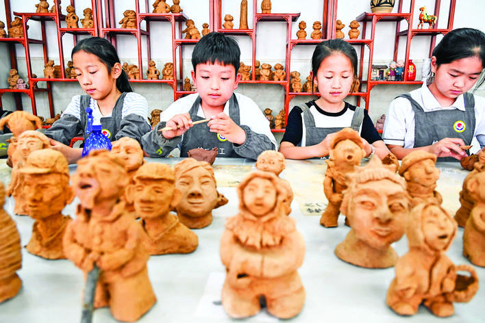 泥塑是一种民间传统艺术,主要以陶泥、黏土等为原料进行捏制创作。孩子们在创作中不仅锻炼了精细动作与专注力,也释放出了奇思妙想的想象力,在潜移默化中将传统文化滋养进心田。 特约摄影 崔松良