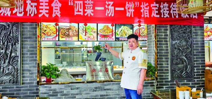 “咱们店是示范店之一,也是劳务品牌实训基地,菜品既要纯正地道,又要有所创新。”近日,记者在东郭南山村全羊馆见到张耀武时,他正和店里的工作人员分享自己对“四菜一汤一饼”地标美食的理解。