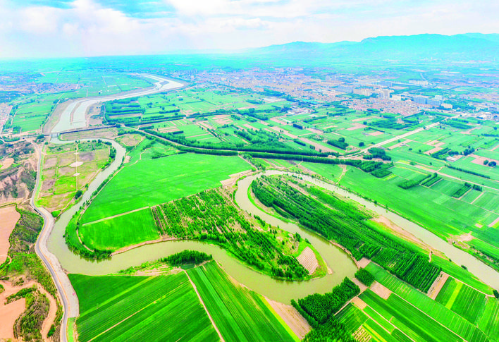 ▲5月13日,在稷山县境内拍摄的汾河岸边绿意盎然的美景。 眼下,我市境内的汾河两岸小麦长势喜人,田间处处绿意扑面、景美如画。农民们正抓紧有利时机,积极开展田间管理工作,为小麦丰收打基础。记者 茹雅 摄