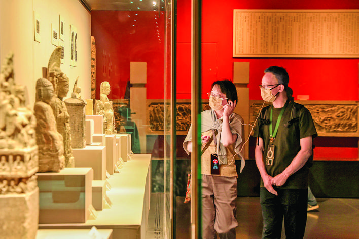 ▲5月18日是国际博物馆日,游客在运城博物馆参观。 记者 茹雅 摄