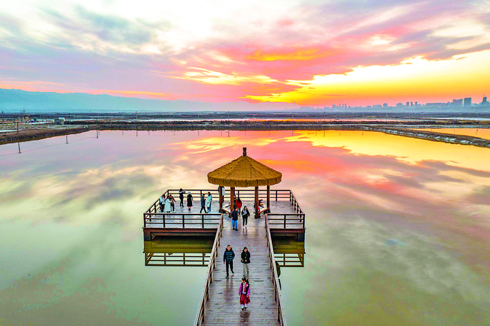此外,盐湖的工业遗产也在文旅融合中重获新生。原盐化四厂的烟囱被改造为“盐梦长廊”文化地标。“盐梦长廊”的10公里廊道串联起老厂房、盐运古道和四周景观,把盐湖生态优势转化为发展胜势。