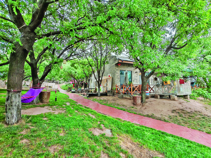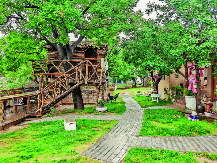 5月22日,置身雨后的乡遇·刘范民宿艺术村,小桥流水,曲径通幽,院落窑洞,在这里,游客或小憩放松身心、或品茗、或喝咖啡,亦能够手捧一本好书,安静地享受美好时光。