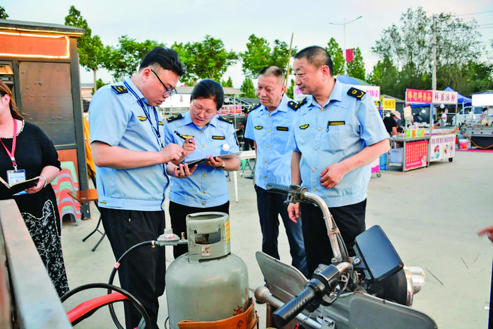运城晚报讯 近日,夏县市场监督管理局联合该县住建局、晋昌液化气有限公司,对夏县县城夜市的液化气钢瓶使用情况进行突击检查(上图)。