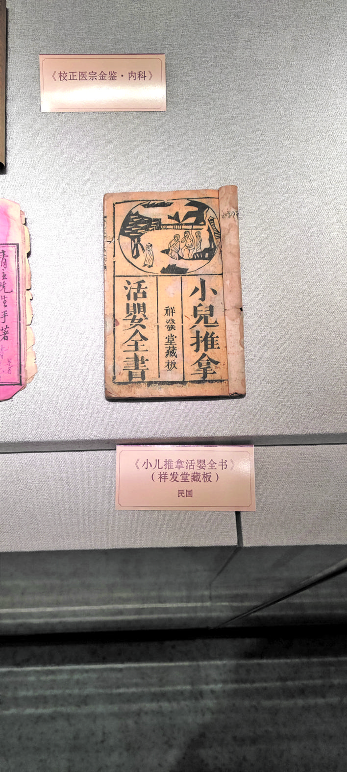 ◀运城博物馆《本草撷华 中医药文化器具展》民国《小儿推拿活婴全书》(祥发堂藏板) 记者 刘亚 摄