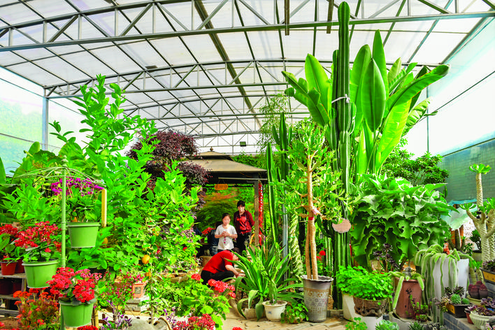 今年50多岁的胡喜朋在永济从商10余年,由于诚实守信、经营有方,逐渐走上了致富路。如何回报家乡,是他经常魂牵梦萦的一桩心愿。他看到近年来农村生活发生了巨大变化,乡亲们衣食无忧、出行有车,但是精神生活还是有所不足,而他的父母喜爱花草、热爱植物,为了让父母开心、晚年幸福,让乡亲们生活充实、精神快乐,他决定创办江口花园。胡喜朋从2020年春天开始搭建阳光花房,购买各种花卉、工具等,经过多年的建设,耗资几十万元,建起了一个五六米高、400余平方米大,种有几百种花卉的阳光花房。走进庭院,仿佛踏入了一个梦幻花园——院内精心规划的花坛错落有致,沿着蜿蜒的小径,各式各样的花卉竞相开放。每一朵花在悉心照料下,都尽情绽放着最美的姿态。这里有桂花树,秋季整个院子都飘着甜香,还有叶片宽大如盘的绿植滴水观音。胡喜朋熟悉每一株植物的喜好,详细到盛花期在几月,哪些是多肉植物,哪些是从南方引进的树种,甚至连这些南方树种过冬时温度不能低于多少摄氏度都了如指掌。假山流水、亭台楼阁、红花绿树,各种南北方常见的、稀有的、各式各样的花草苗木等,让人目不暇接、眼花缭乱。花园有各种绿植近千盆(株),见缝插绿、美不胜收。