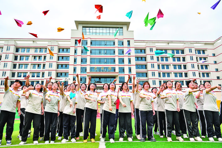 ▲6月3日,在湖北省襄阳市保康县第一中学,高三学生在操场上放飞写有自己心愿的纸飞机。 2025年高考在即,高三学生正加紧复习。一些学校组织减压活动,帮助学生放松身心,以轻松、自信的心态迎接高考。