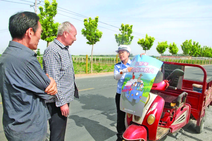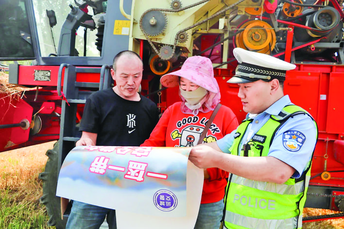 针对麦收时节特点,民辅警还推出“三夏安全套餐”:为农用车粘贴反光标识,给驾驶人发放“安全作业提醒卡”,在村口设立“交通安全劝导站”,全力以赴护航夏收。