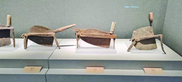 ▲运城博物馆《本草撷华 中医药文化器具展》中的各类药材切制器具 记者 刘亚 摄