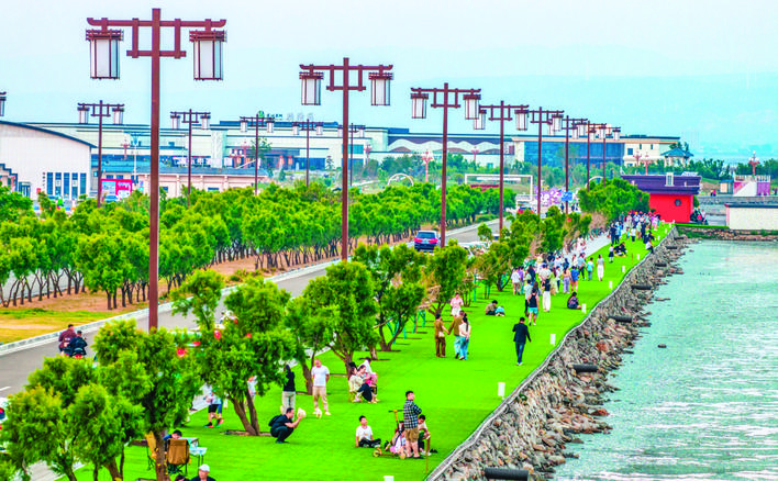 ▲6月9日,市民在运城盐湖景区休闲纳凉。 近年来,我市坚持“生态优先、绿色发展”理念,不断加大“退盐还湖”“还湖于民”生态修复力度,持续提升城市生态景观功能,盐湖成为市民亲近自然、休闲游玩的好去处。 记者 茹雅 摄