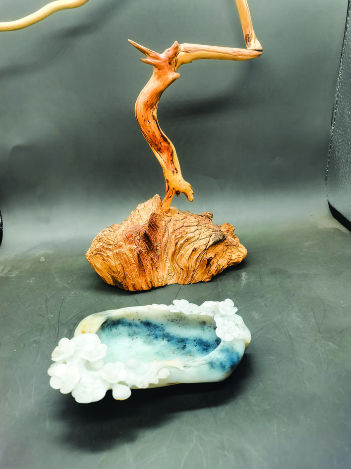 ▲和田玉高浮雕梅花文房水盂