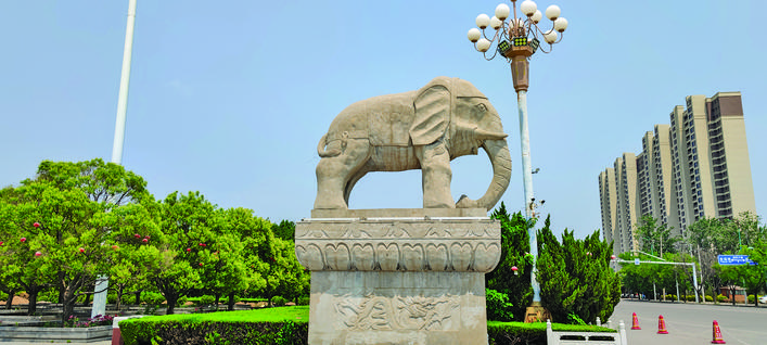 ▲盐湖区舜帝德孝文化旅游景区的石雕大象 记者 刘亚 摄