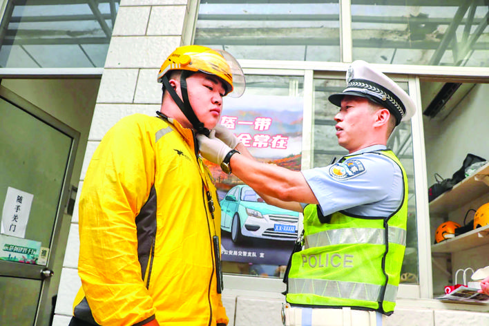 民辅警结合“一盔一带”安全守护行动,针对外卖骑手企业的特点,面对面讲解骑乘电动自行车、摩托车不佩戴安全头盔、闯红灯、逆向行驶、疲劳驾驶、随意掉头等交通违法行为,开展针对性宣传警示教育。结合辖区发生的典型事故案例,告诫骑手们杜绝侥幸心理,时刻遵规守法,坚决抵制交通陋习,切勿拿生命安全“抢单”。
