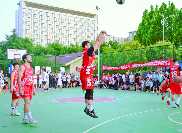 天色尚早,场边已围满了热情的观众,啦啦队活力四射的舞蹈表演点燃现场气氛。晚7时,随着一声哨响,第一场比赛准时开始。球员们身着鲜艳的队服,在场上奔跑跳跃,对抗激烈异常(左图)。每一次突破上篮、每一个篮板球都引得观众席上爆发阵阵喝彩。赛场上,球鞋与地面的摩擦声、篮球撞击篮板的声响、裁判的哨声此起彼伏,谱写了一曲充满活力的夏夜交响乐。