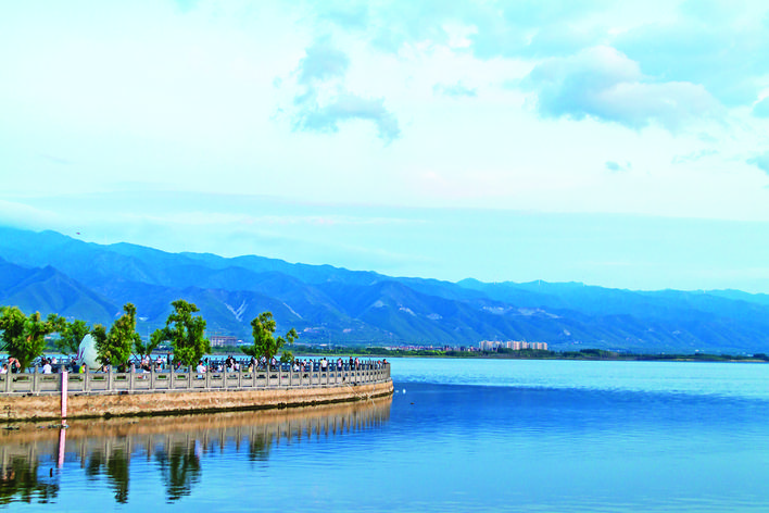 ▲6月18日,雨后的运城盐湖景区在蓝天白云的映衬下,显得分外迷人。游客们漫步其中,呼吸着清新的空气,欣赏着水天一色的盐湖美景。 姜桦 摄