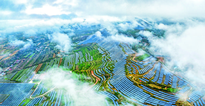 ▲7月1日,在芮城县光伏领跑技术基地拍摄的壮美云海景观。