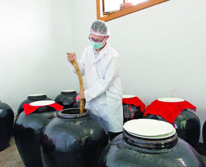 在周俊田的小作坊里,酿醋规矩多而严。进入操作间,必须严格洗手消毒,穿戴好工作服、帽子和口罩,以确保卫生;搅拌时,只能使用桑木棍,这是祖辈流传下来的讲究;搅拌工作必须由专人负责,不得随意换人顶替;每次搅拌后,为防止杂味入缸,必须立即密封。