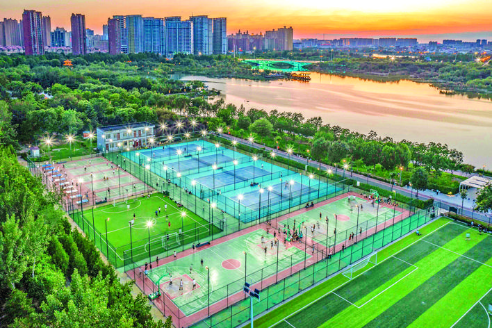 ▶7月13日晚,市民在中心城区禹都公园运动健身。 近年来,我市因地制宜,围绕全民健身需求,整合优化公园、广场、小区内的空间资源,扩大城市绿色空间,打造市民“15分钟健身圈”,构建更高水平的全民健身公共服务体系,满足群众快乐健身需求,不断提升群众获得感。