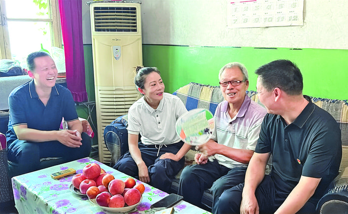 这4名老党员虽然年事已高,但仍关心社区发展,积极参与社区组织的志愿服务活动,有的参与社区环境整治,有的参与矛盾调解,有的坚持每年为一线工作人员及特殊群体缝制香囊和公交车坐垫……每到一户,慰问小组都送上牛奶、食用油等慰问品,大家详细了解老党员的生活、健康情况,聆听他们的心声,对他们发挥余热、奉献社会的精神给予高度赞扬,并表示要向他们学习,为社区发展贡献力量(右图)。