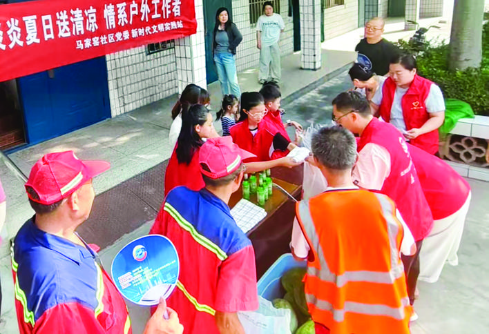 运城晚报讯(记者 赵茜)7月15日清晨,在盐湖区南城街道马家窑社区,一场炎炎夏日送清凉的志愿服务活动在此开展,不仅为辖区户外工作者送去贴心关怀,更让环保理念在青少年心中扎根。