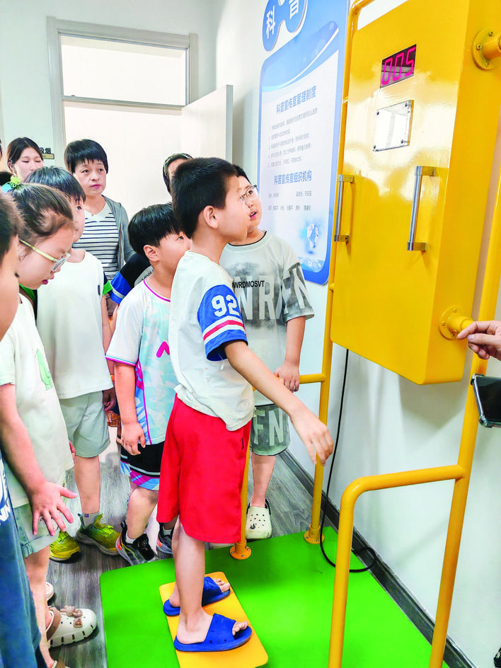 随后,志愿者带领孩子们参观了社区科技馆,从璀璨的银河到神秘的黑洞,从地球的诞生到人类探索宇宙的历程,深入浅出地讲解宇宙的奥秘。志愿者以互动提问“如果地球停止自转会发生什么?”“为什么我们看不到月球背面?”激发孩子们的想象力。志愿者一一耐心解答,将复杂的科学问题转化为孩子们能理解的生活类比,现场笑声与惊叹声交织。