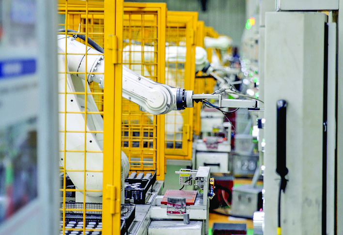 工人使用电脑进行建模,铁粉通过机器被压制成型,机械臂忙碌地来回飞舞着……时值盛夏,热浪滚烫,然而比气温还火热的是山西东睦磁电有限公司(以下简称“东睦磁电”)的生产车间。