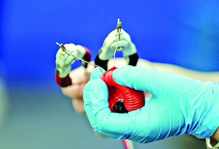 在成品区,不同规格的产品正被工人打包。该公司技术部负责人高晋昌介绍,生产这些产品的主要原料是铁粉,其中还添加了硅、铝、镍、钼等金属。经特殊工艺制作处理后,它们就成了一种软磁材料,也叫磁敏感材料。