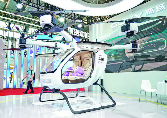 ▶这是7月17日在智能汽车链展区拍摄的一款智慧低空出行飞行体。 创新是链博会的底色,也是链博会的生命力所在。第三届中国国际供应链促进博览会近日在北京举办,本届链博会不仅在先进制造链展区首次设置创新链专区,还首次举办“链博首发站”新品发布专区。全球供应链上的新产品、新工艺、新场景、新生态竞相“绽放”,让观众眼前一亮。 新华社记者 张晨霖 摄