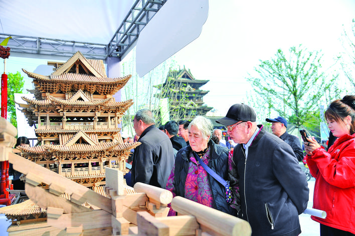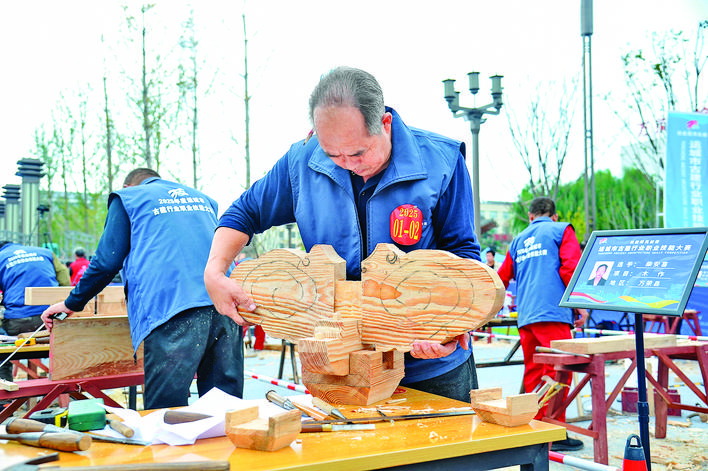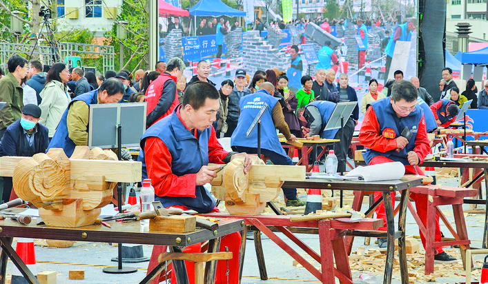 “飞云楼前在‘搭积木’呢,他们好厉害啊!”“对,三百六十行,行行出状元。每个行业都有佼佼者,选自己喜欢做的事,坚持做一定会有收获。”中午12时许,6岁的糖糖和妈妈专门来到现场观赛。工匠们经过短暂休息后继续开工,不少作品已初见雏形,引得大家争相比较、热烈讨论。