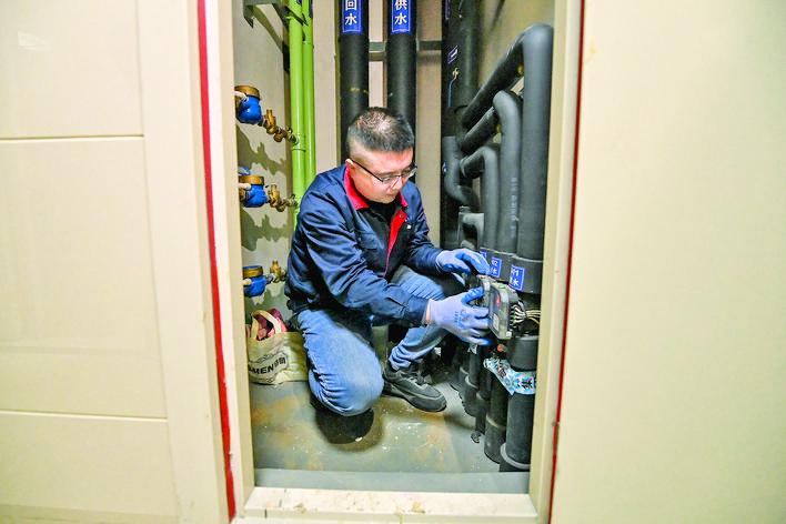 ▲10月20日,在太原市万柏林区一小区,工作人员在楼道供热管井间内检查分户流量情况。 近期,山西多地出现降温降雨天气。为应对冷空气影响,山西省太原市于10月19日提前启动供热工作,并通过加强巡检、24小时监控等措施,保障群众温暖舒适过冬。