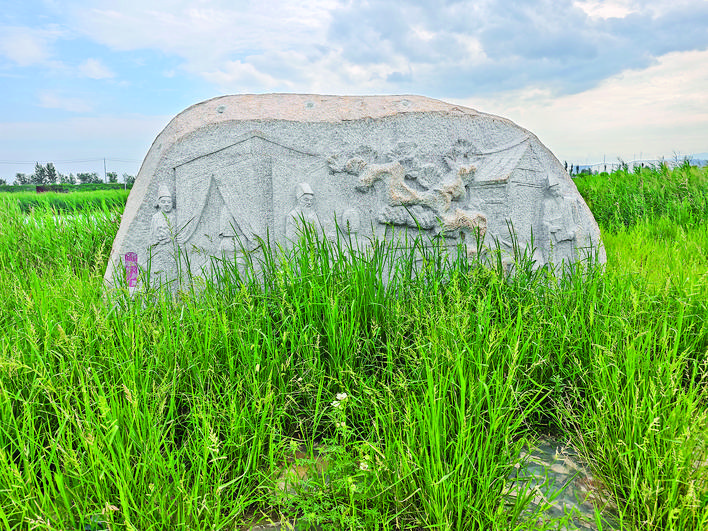 ▲河东成语典故园“狗咬吕洞宾,不识好人心”雕塑