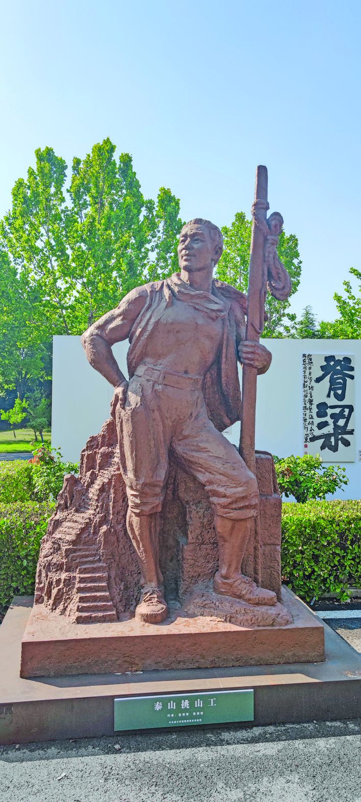 ▲夏县宇达青铜文化产业园“泰山挑山工”雕塑 记者 刘亚 摄