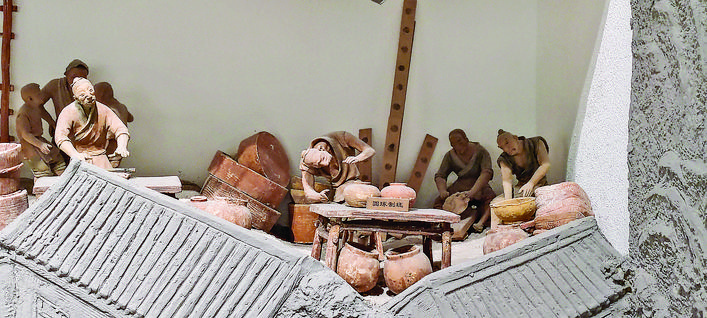 ▲山西博物院展出的古人陶瓷制坯场景记者 刘亚 摄
