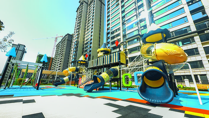 ◀儿童游乐区设施齐全