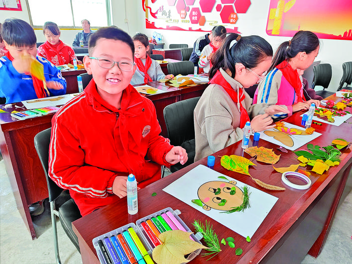 成长的快乐,在于沉浸式体验与真实陪伴。音乐课上,《歌唱祖国》的稚嫩歌声传递家国情怀;绘画课上,彩笔勾勒的不仅是家园新颜,更是孩子们对美好生活的向往;自然拼贴活动中,落叶枯枝变成创意作品,孩子们学会发现身边之美;趣味运动场上,呐喊声与欢笑声交织,凝聚起团结协作的力量。同时,专业志愿者的心理疏导、一对一谈心,更让乡村孩子的情感需求得到回应。这些看得见、摸得着的幸福体验,远比说教更有力量。