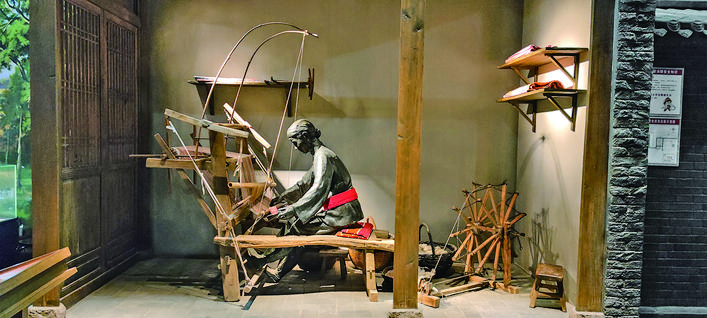 ◀永济博物馆民俗规划展展出的古人织布场景 记者 刘亚 摄